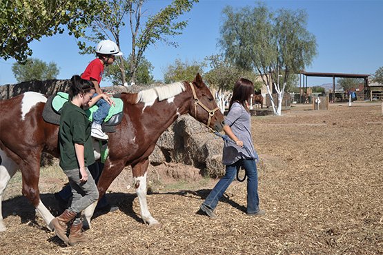 Physical, occupational, and speech therapies are offered in our new on-site therapy clinic as well as in clients’ homes by our licensed and certified therapists through Hoofbeats with Heart.